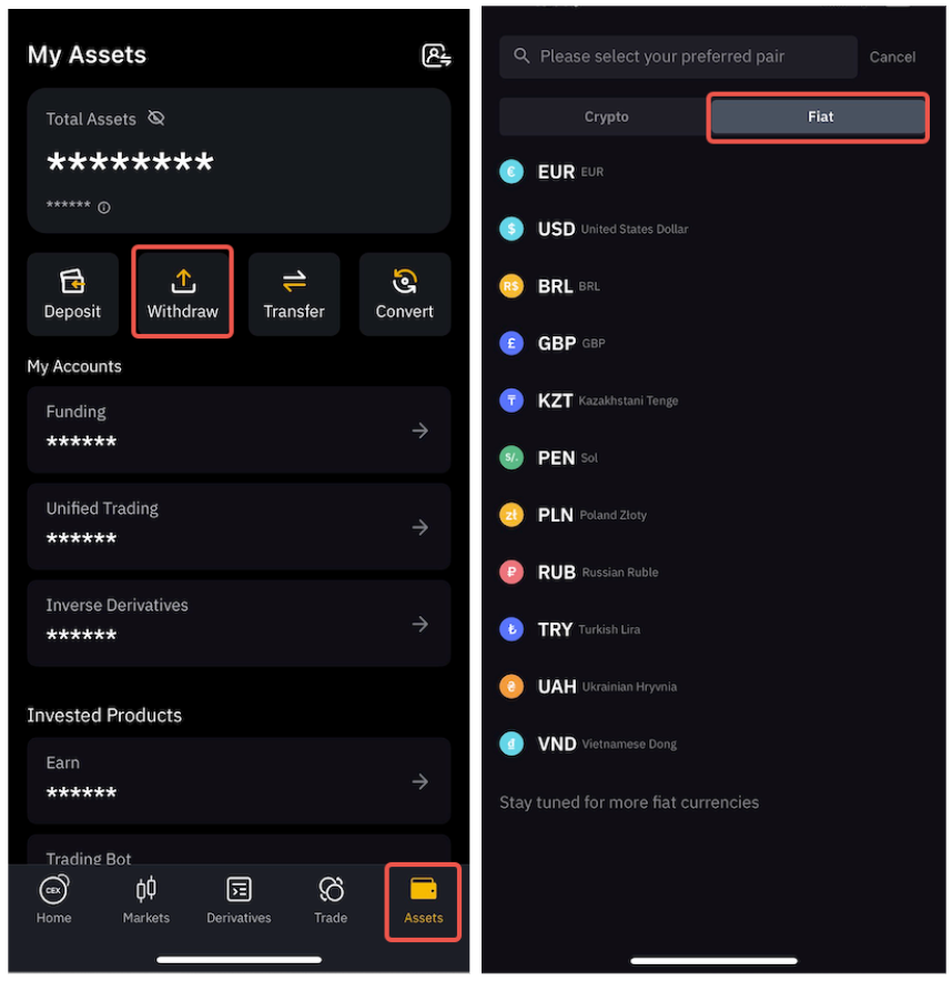 To learn more about how to withdraw fiat currency, please refer to the available articles for each currency here.