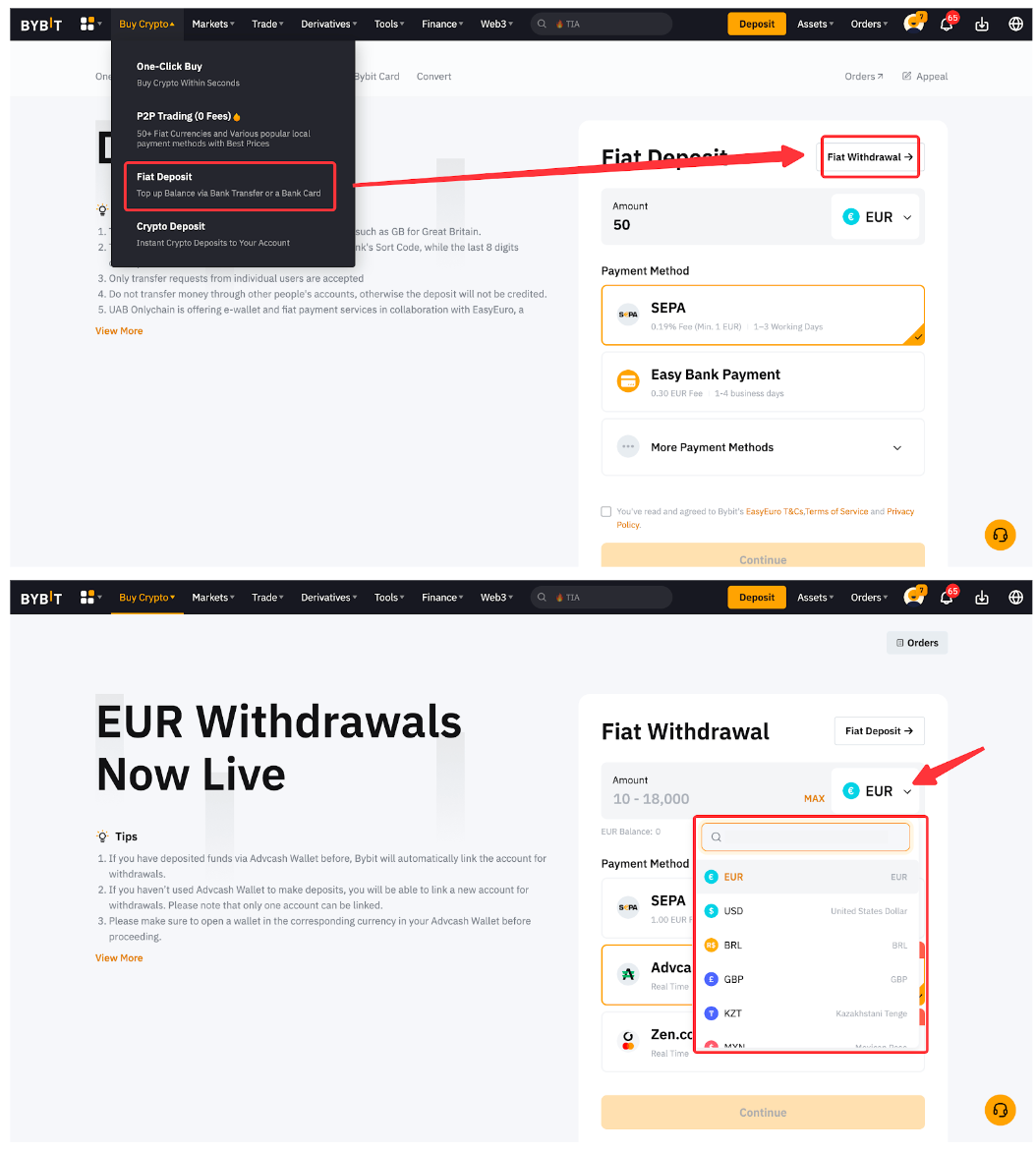 Only a selected amount of fiat currencies are available for withdrawal on Bybit. You will be able to see the fiat currencies supported for fiat withdrawal on the Fiat Withdrawal page.