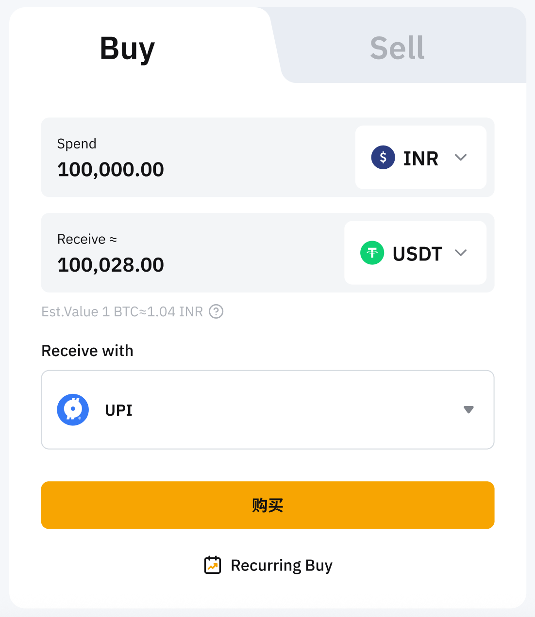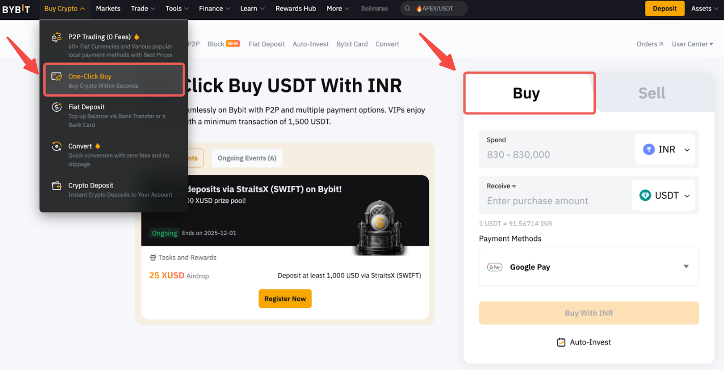 Step 1: Click on Buy Crypto One-Click Buy at the top left corner of the navigation bar to enter the Buy function page.