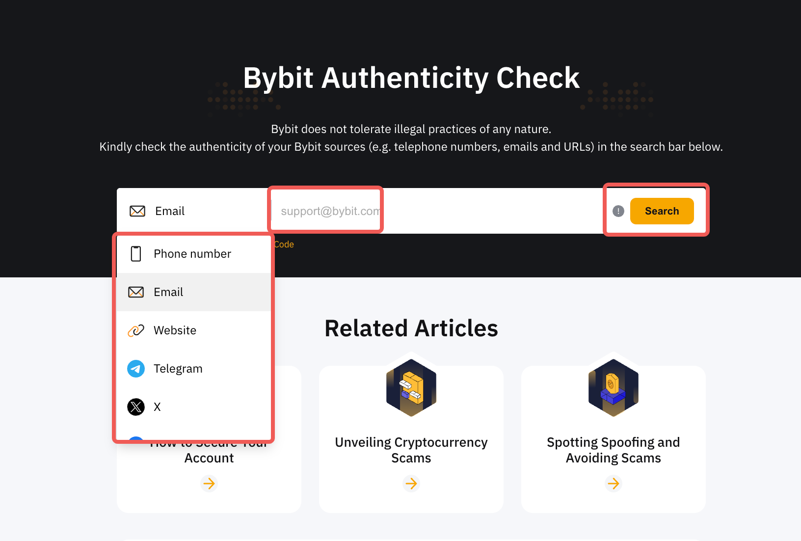 You can easily check whether the sources are from Bybit by using our Authenticity Checker to verify their authenticity. Simply select the channel type and fill in the details to get the result.