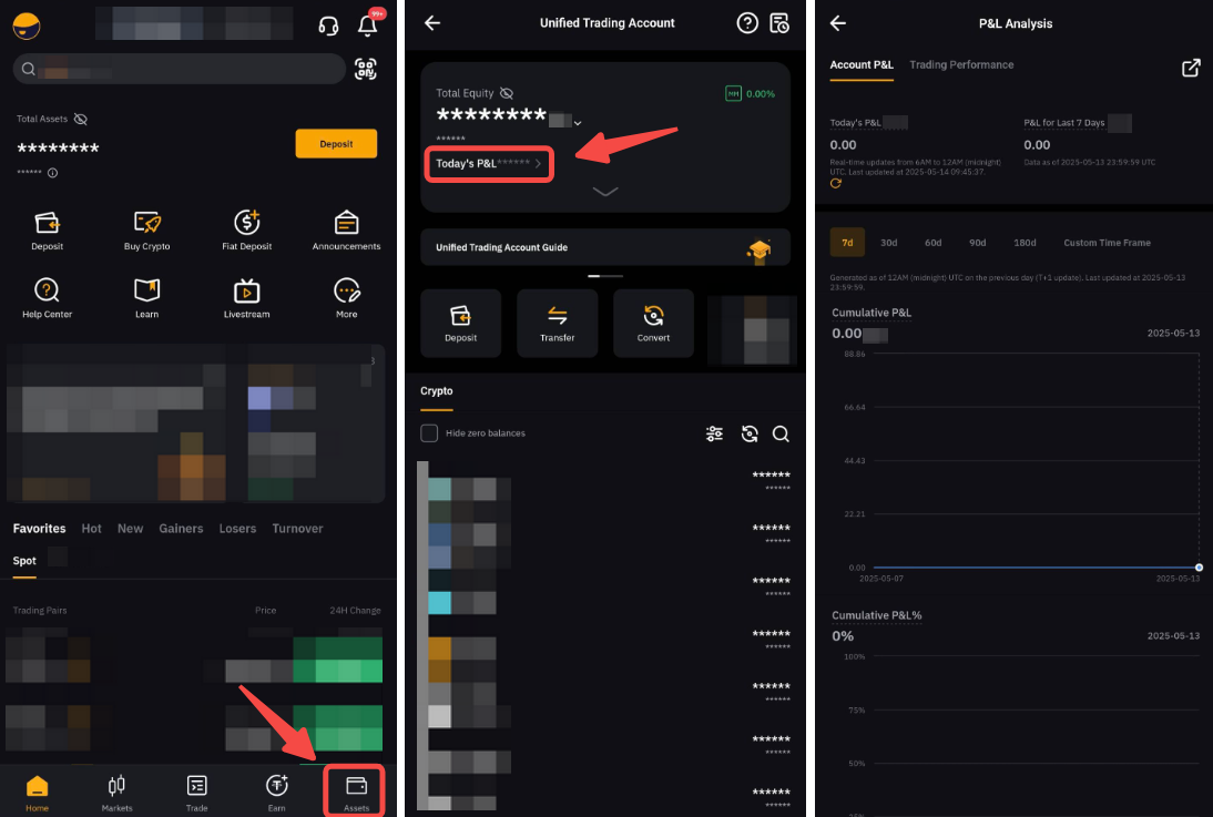 En la aplicación, ve a la página de activos de tu cuenta de trading unificada y toca en PyG de hoy.