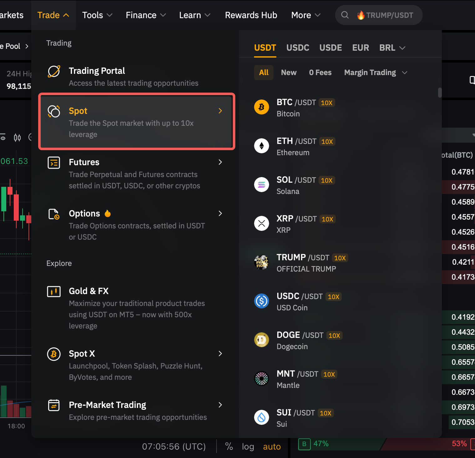 Paso 1: Inicia sesión en tu cuenta y haz clic en Trade → Spot en la barra de navegación superior para acceder a la página de trading spot.