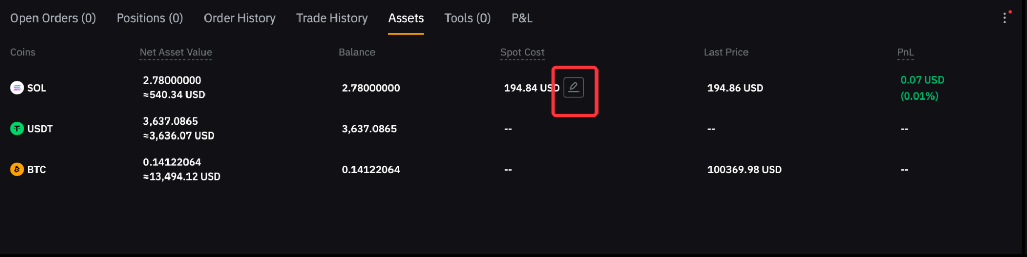 Bybit calcula el coste spot utilizando datos recopilados en nuestra plataforma desde 12 de feb de 2025. Si el coste mostrado no coincide con tu coste real, puedes ajustarlo manualmente.