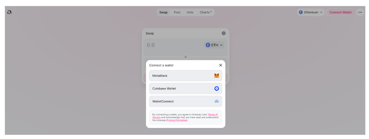 Paso 2: Haga clic en Conectar Billetera en la esquina superior derecha de la página Uniswap. Si no hay ningún Bybit Wallet para conectar, puede seleccionar MetaMask para vincular Bybit Wallet. Antes de continuar, asegúrese de haber añadido la extensión Bybit Wallet.