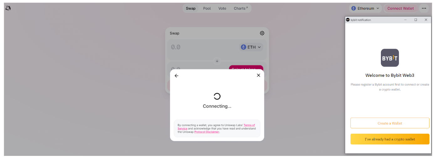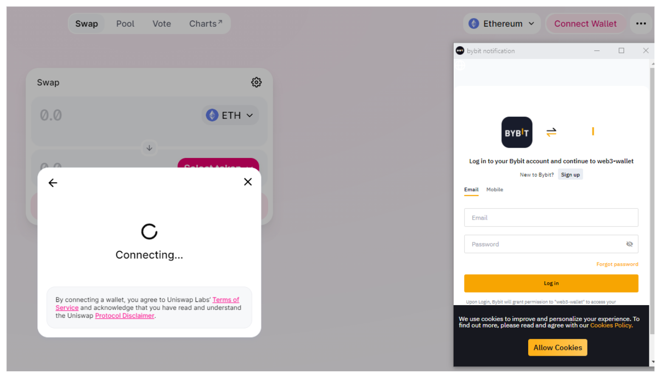 Tu billetera Bybit Billetera se conectará a Uniswap.