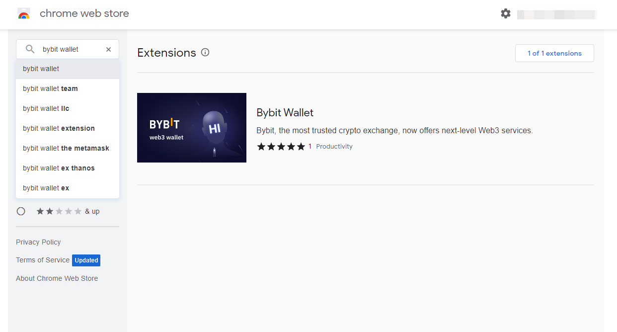 Paso 1: Por favor, visite la Chrome Web Store y busque Bybit Wallet, a continuación, haga clic en la página de Bybit Wallet.
