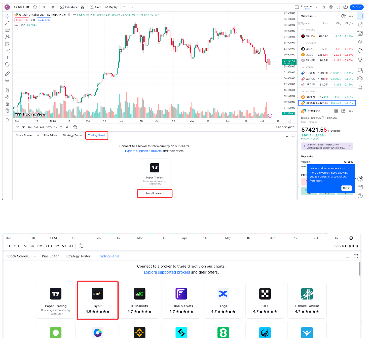 Paso 2: En el Panel de trading, desplázate hasta la sección de brokers admitidos y haz clic en Ver todos los brokers Bybit.