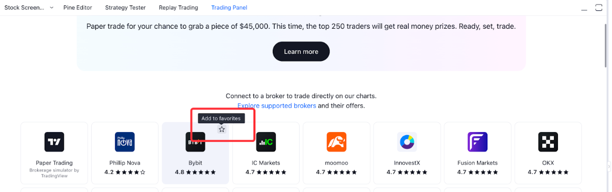 Puedes añadir Bybit a tu lista de Favoritos de Broker, lo que permite un acceso rápido para conectarte a Bybit.