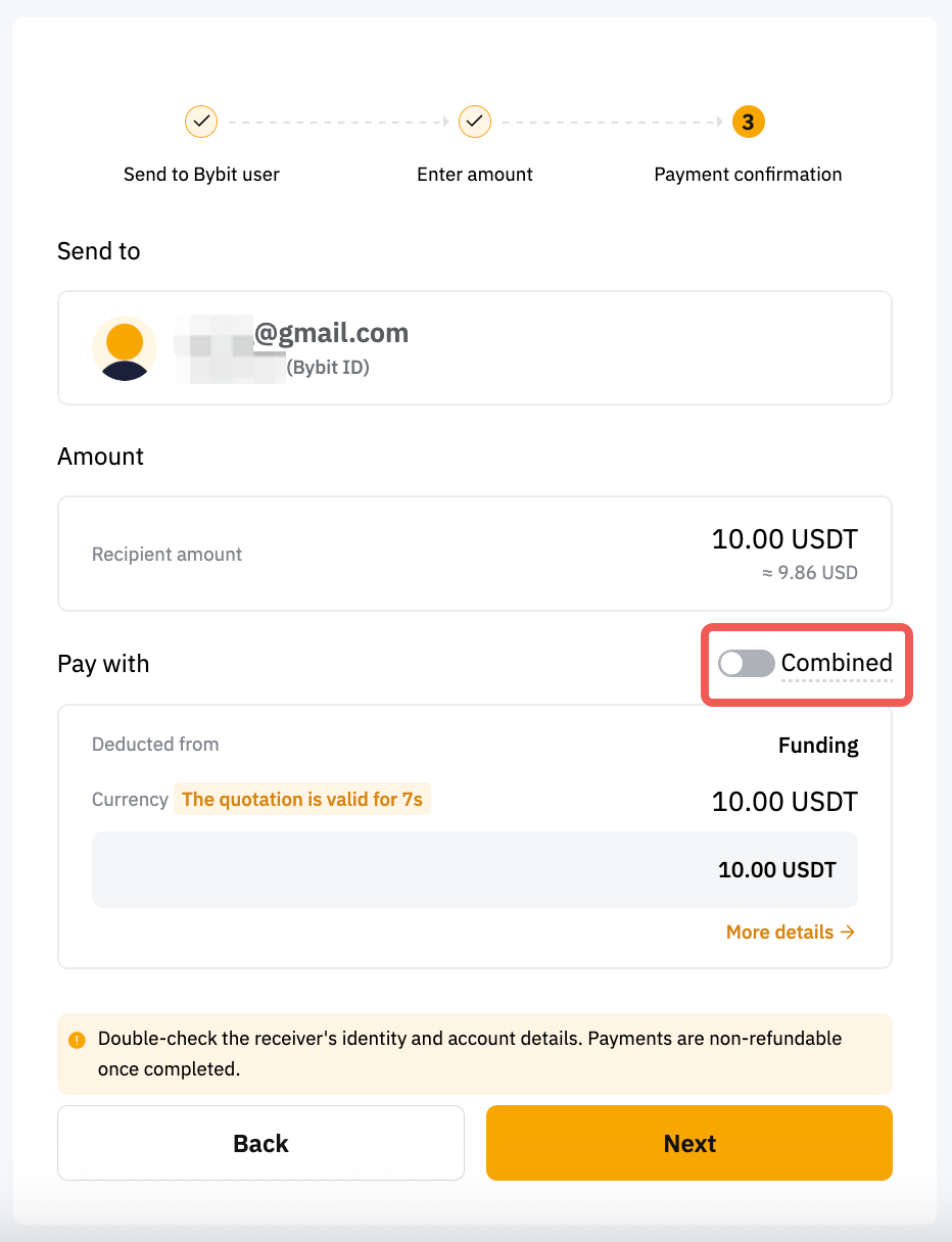• Si el botón Combinado está activado y no hay suficiente USDT, la deducción de fondos se realizará de acuerdo con la prioridad de pago que establezcas.