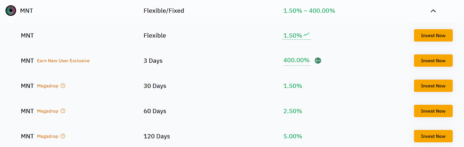 Retenga MNT para participar en Launchpool, Launchpad, Megadrop y Token Splash para obtener acceso anticipado a nuevos tokens y asignaciones más altas.