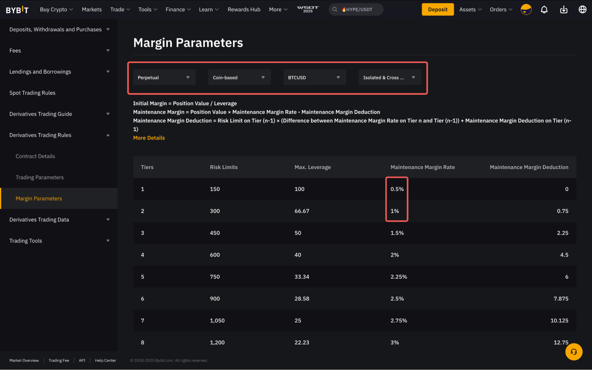 Por ejemplo, cuando abres una posición de BTCUSD con un valor de posición de 150 BTC o menos, la tasa de margen de mantenimiento (MMR) requerida para la posición es del 0,5 % del valor de la posición. Si el valor de la posición aumenta a 300 BTC, la TMM requerida también aumentará al 1 % del valor de la posición.