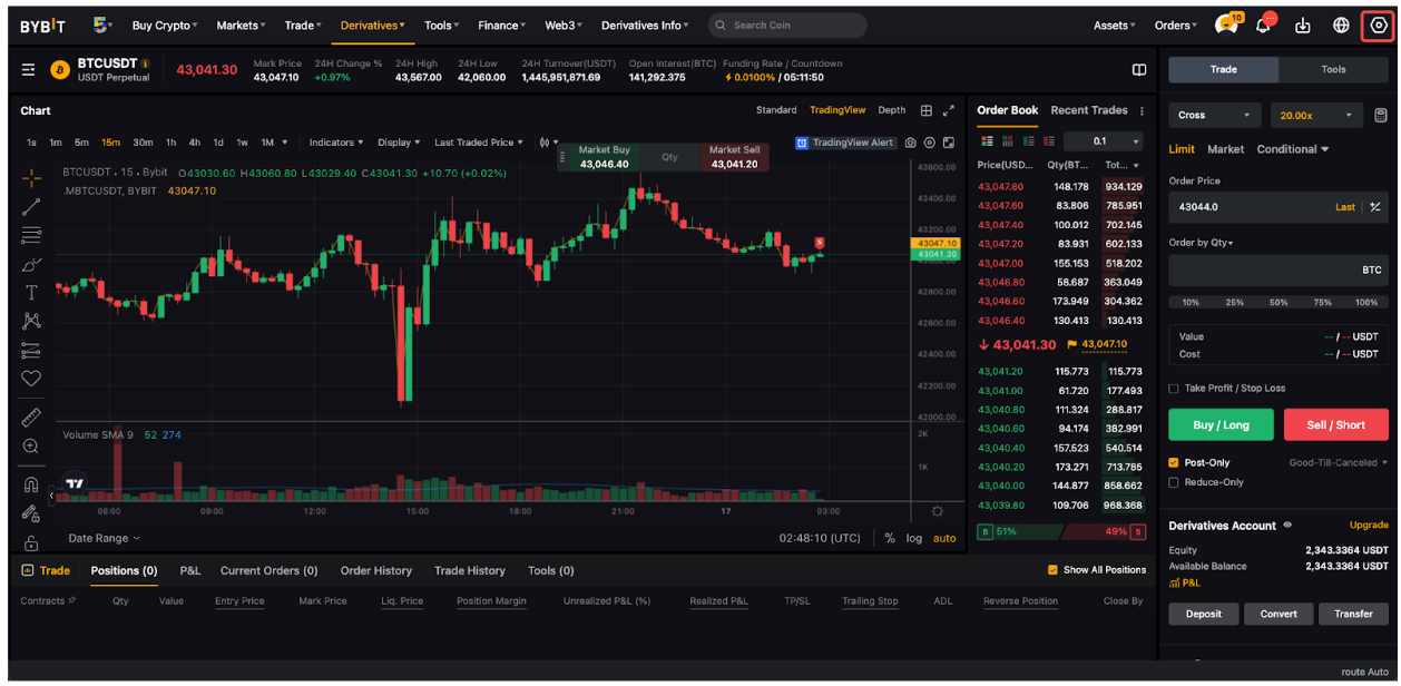Paso 1: abre la aplicación de Bybit y ve a la página de trading de Derivados de tu par de trading preferido.