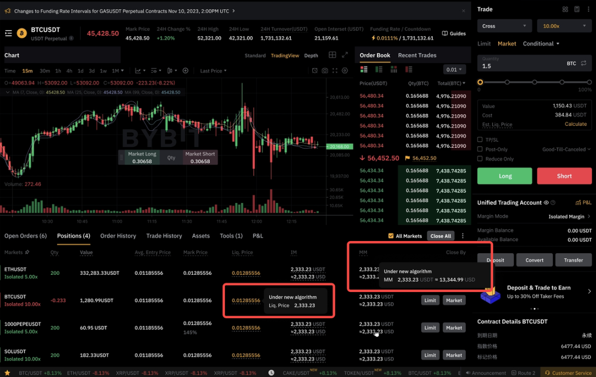 Лимит риска: уровень лимита риска теперь будет динамически регулироваться на основе Цены маркировки в реальном времени и совокупной стоимости позиций и ордеров.